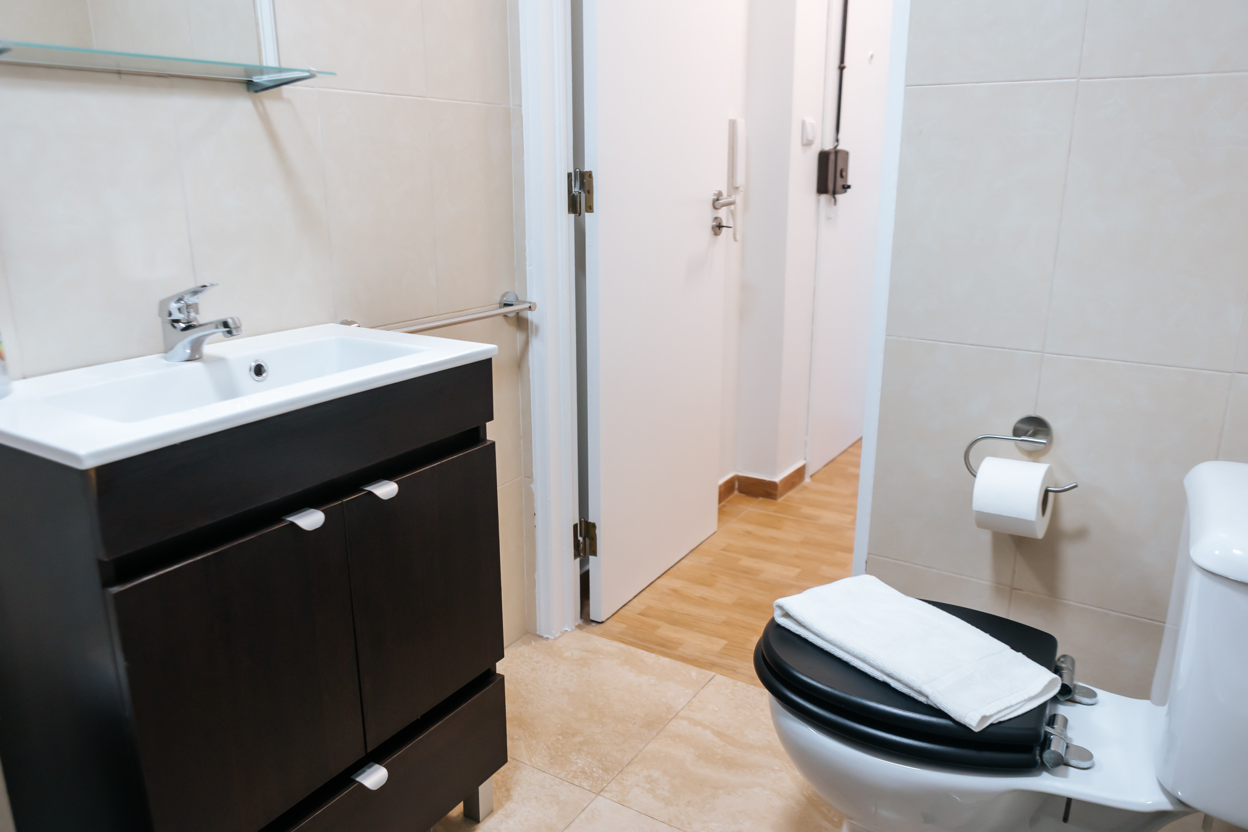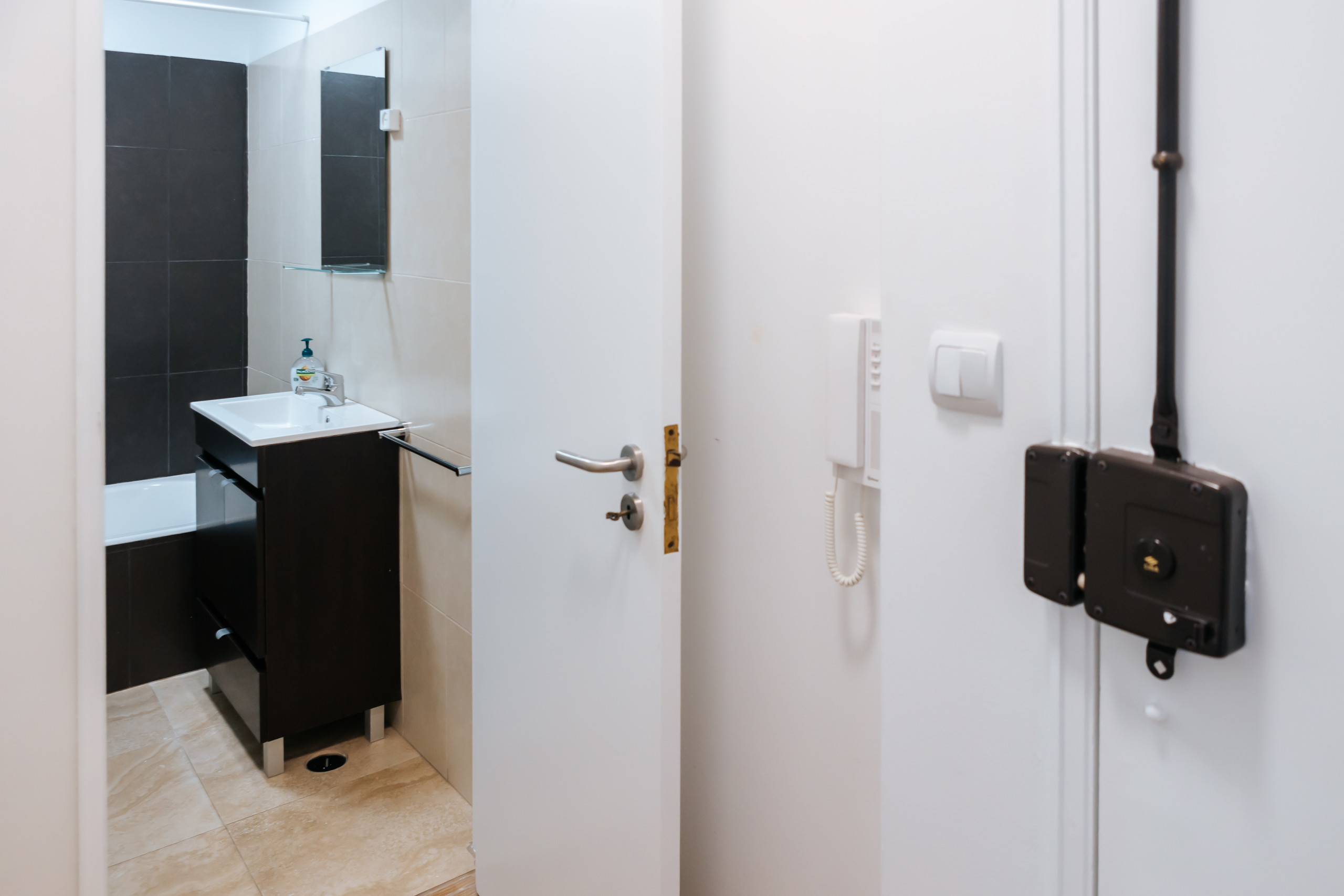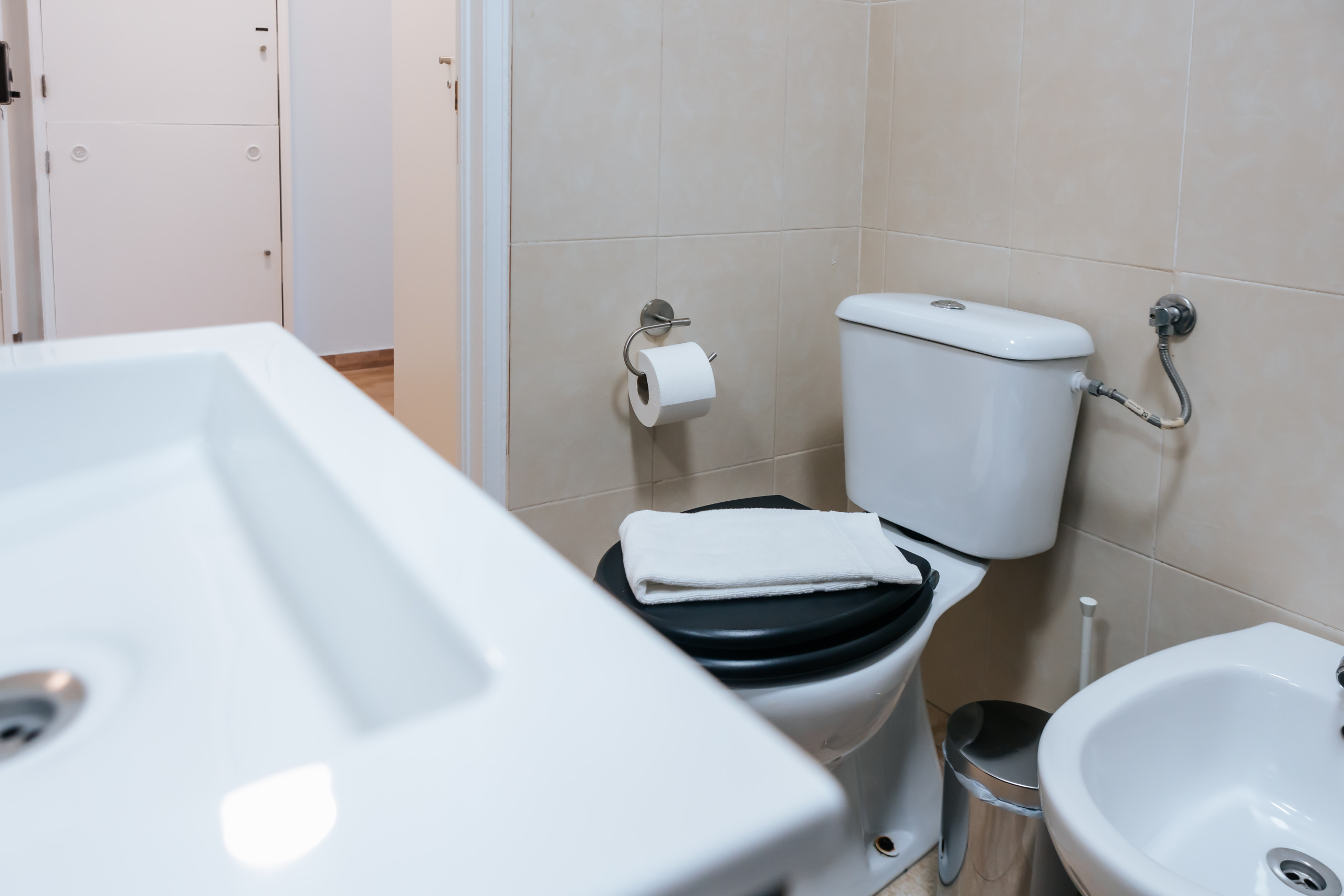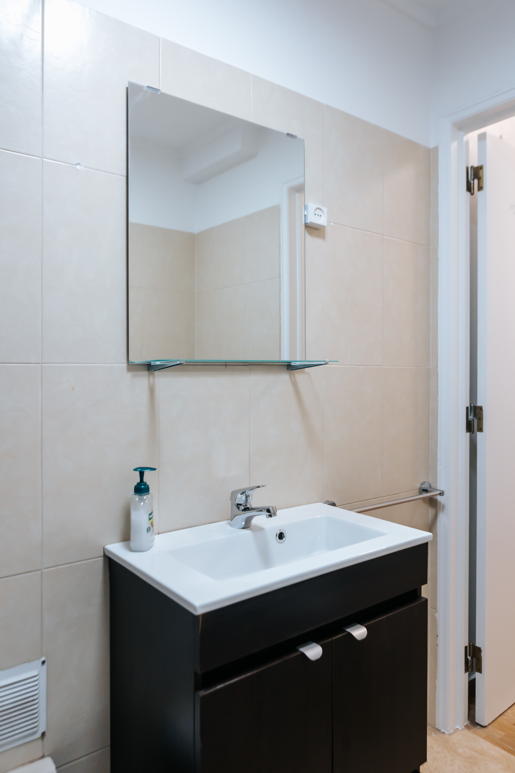 O banheiro é projetado com um toque de elegância e oferece uma estética moderna. Equipado com um chuveiro conveniente, você pode se refrescar e rejuvenescer após um dia explorando as animadas ruas de Lisboa. Sempre fornecemos toalhas limpas e uma quantidade adequada de papel higiênico para o seu conforto e conveniência.