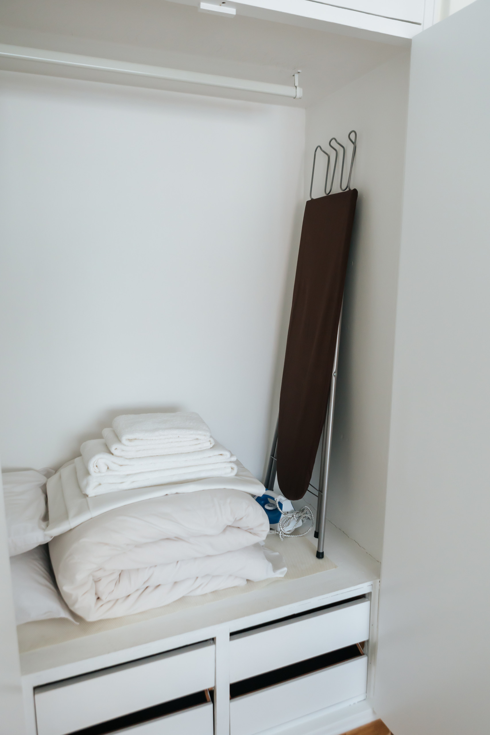 Ao entrar, você encontrará um quarto espaçoso, limpo e luminoso, que proporciona um refúgio relaxante. O quarto possui uma confortável cama de casal para uma noite de sono tranquila, juntamente com uma mesa perfeita para nômades digitais ou qualquer pessoa que precise de um espaço de trabalho dedicado. Duas janelas grandes inundam o quarto com luz natural, criando uma atmosfera acolhedora e convidativa.