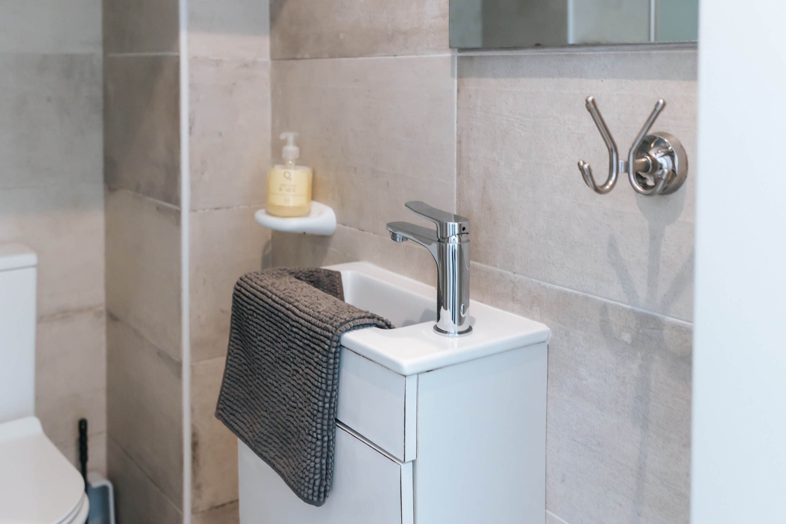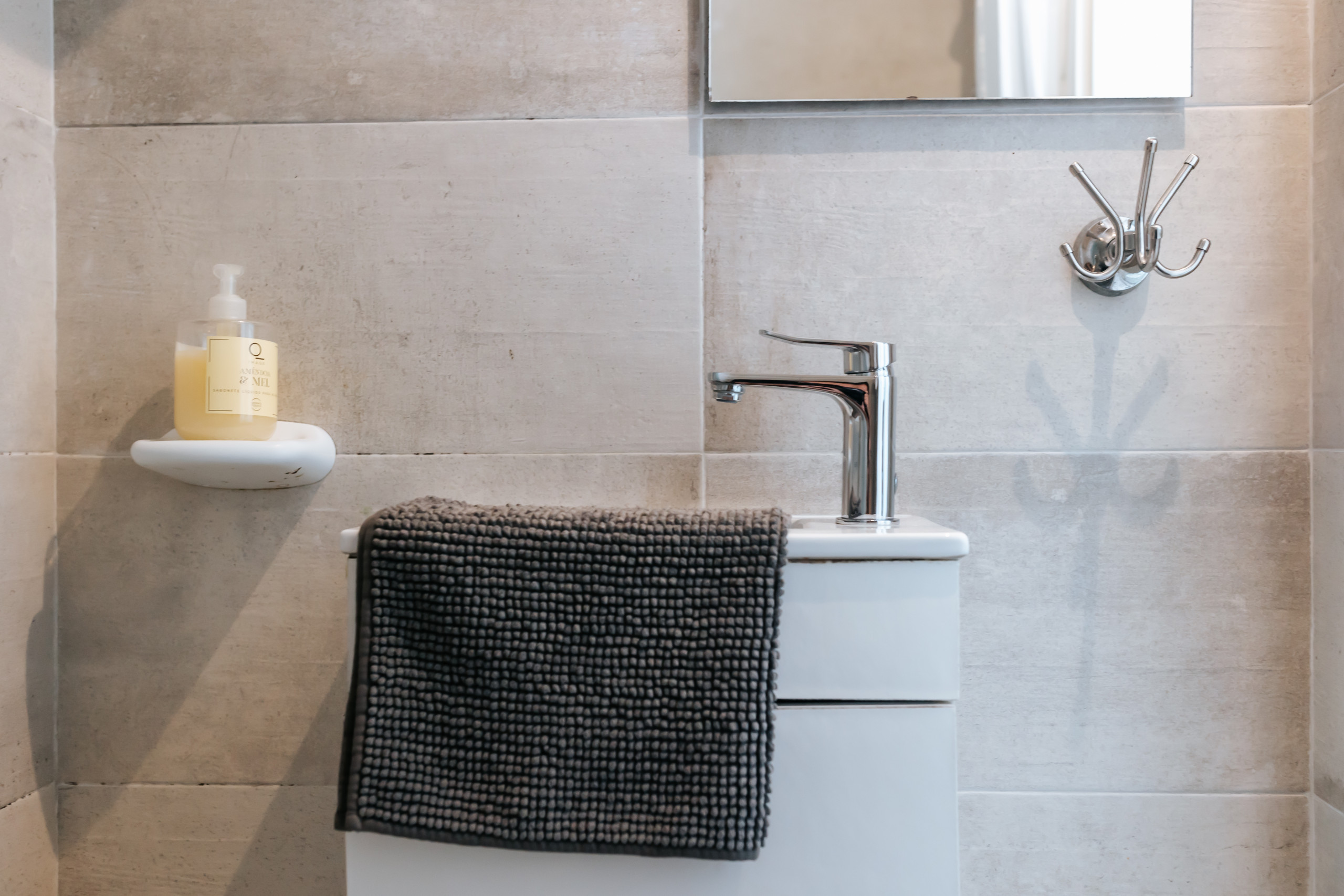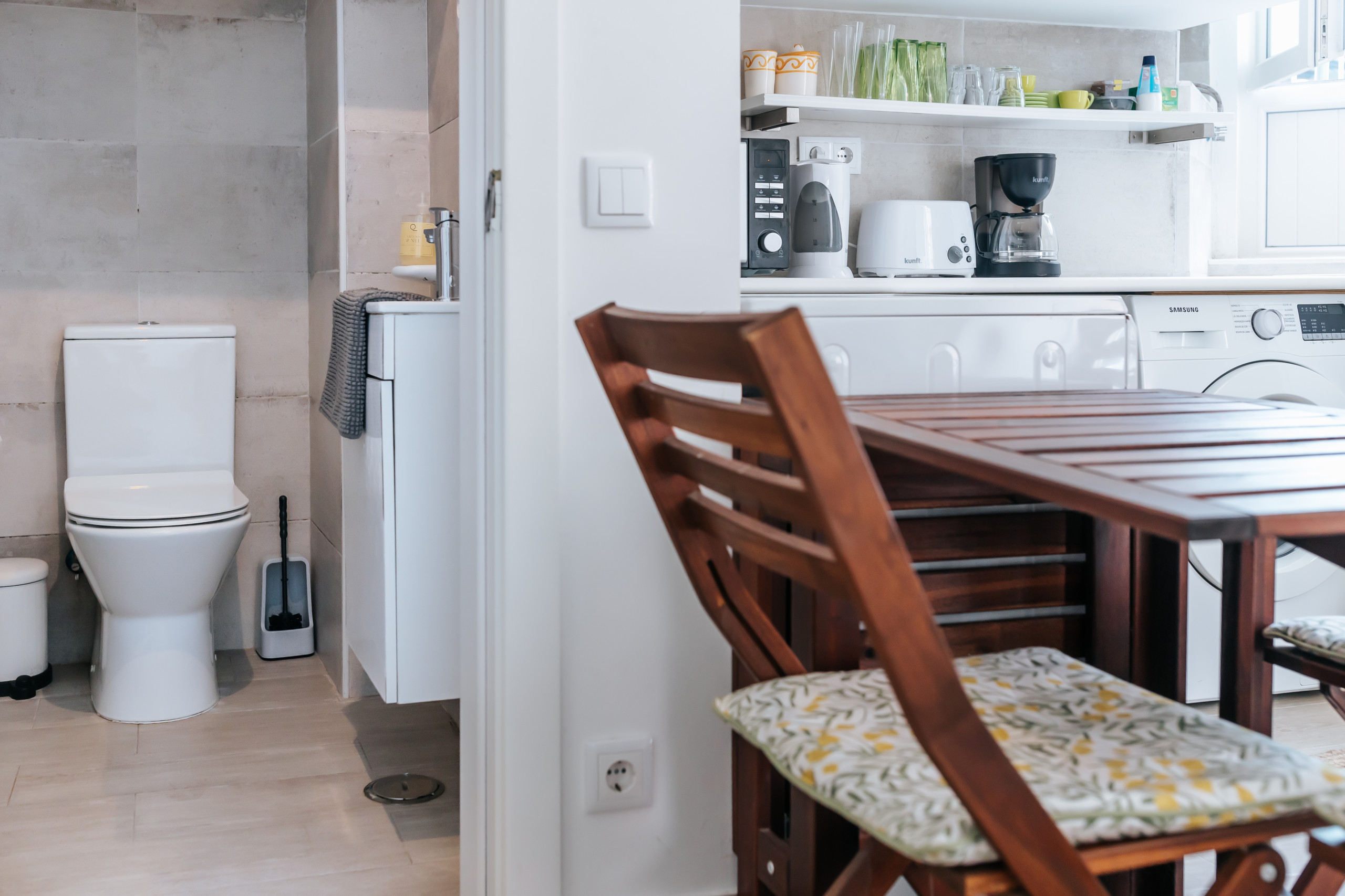 A casa-de-banho é funcional, com um toque de elegância e estética moderna. Equipado com um chuveiro conveniente, você pode se refrescar e rejuvenescer após um dia explorando as animadas ruas de Lisboa. Sempre fornecemos toalhas limpas e uma quantidade adequada de papel higiênico para o seu conforto e conveniência.