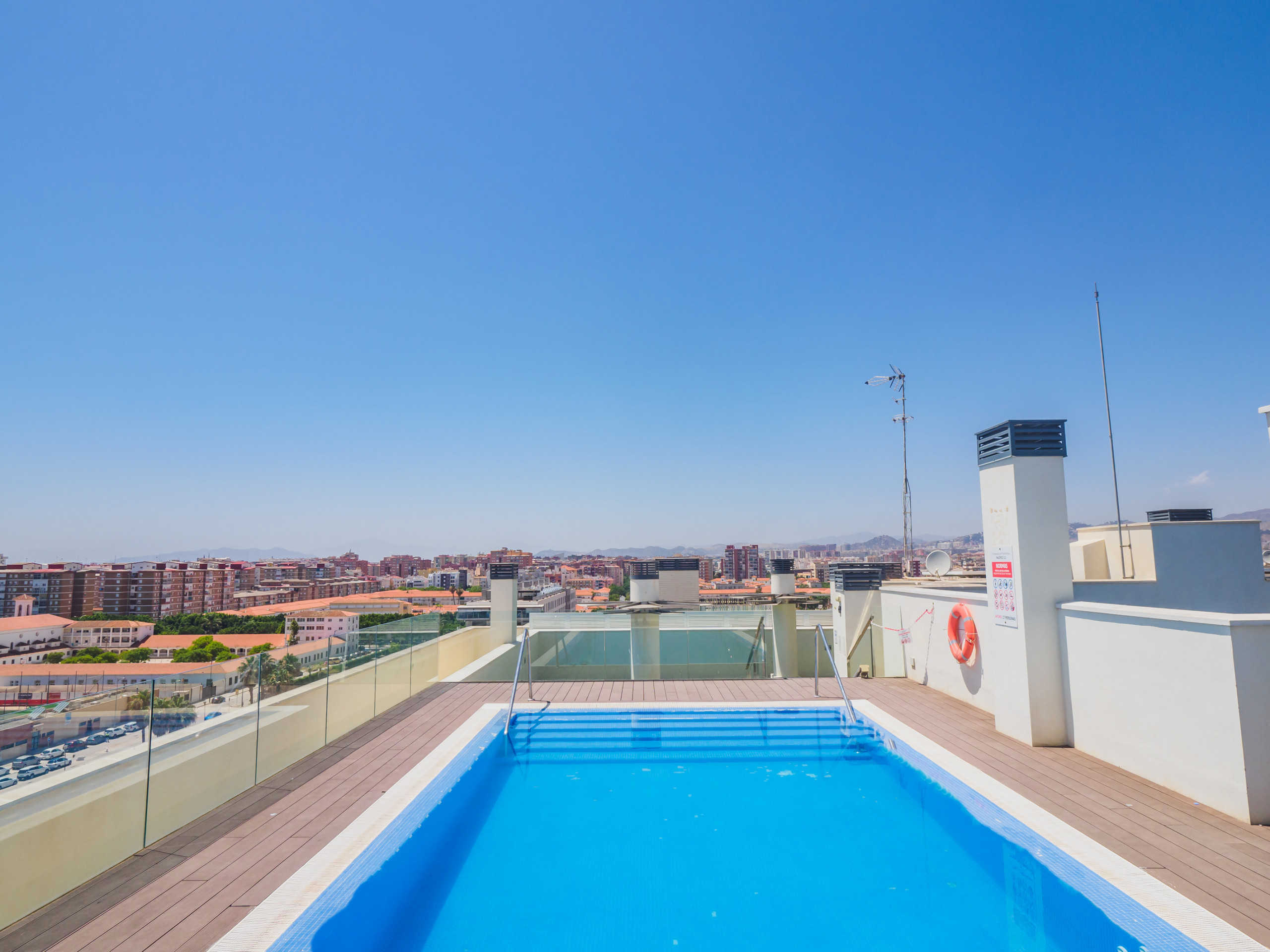 Right on the beach in Malaga, everything you need for a short break is here. A rooftop pool, beach downstairs and it's a short walk to a wide range of restaurants and supermarkets. Free parking and lots of scooter hire points nearby, you can explore ver mais