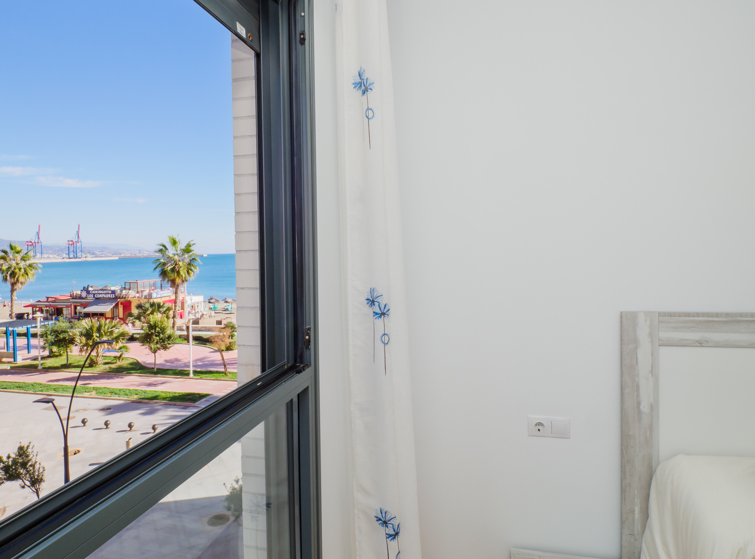 Location is the best in Malaga if you want to be by the beach and it is a modern unit with good quality white goods. The balcony is private because the historic chimney hides it which is a nice feature. Caution - the furniture is very basic for such an expensive unit.