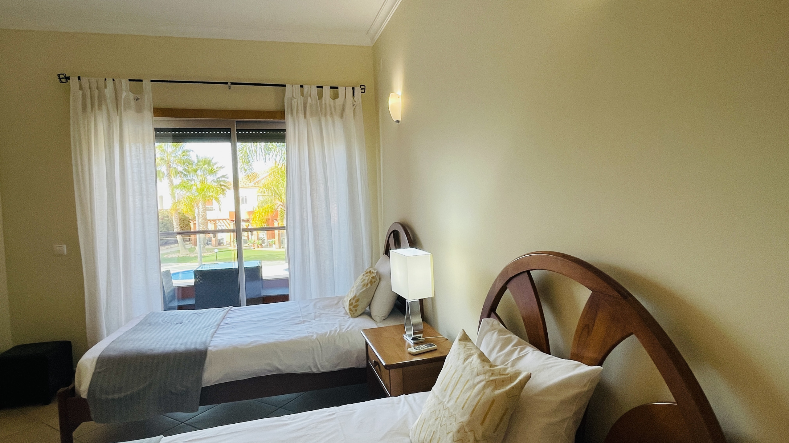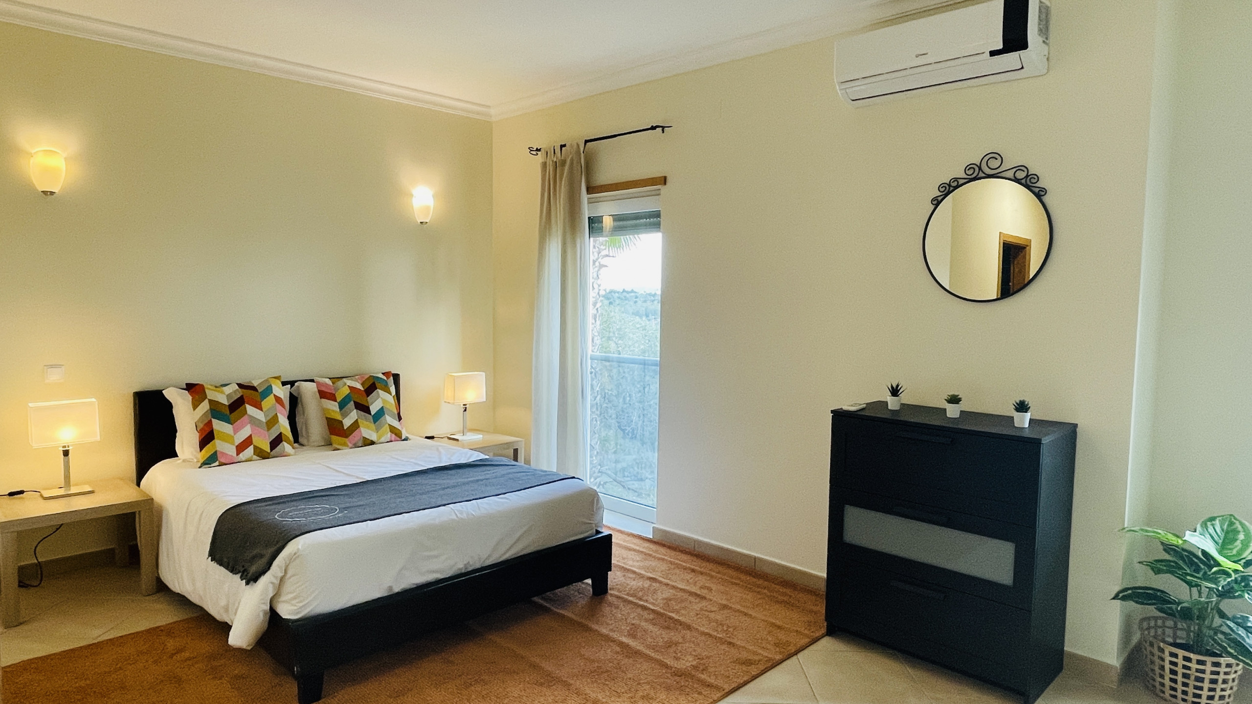 Quartos: A casa dispõe de três quartos espaçosos, todos equipados com ar-condicionado para garantir conforto durante todo o dia. A suíte principal oferece uma cama de casal e uma casa de banho privativa, enquanto os outros dois quartos incluem uma cama de casal e duas camas de solteiro, respectivamente.