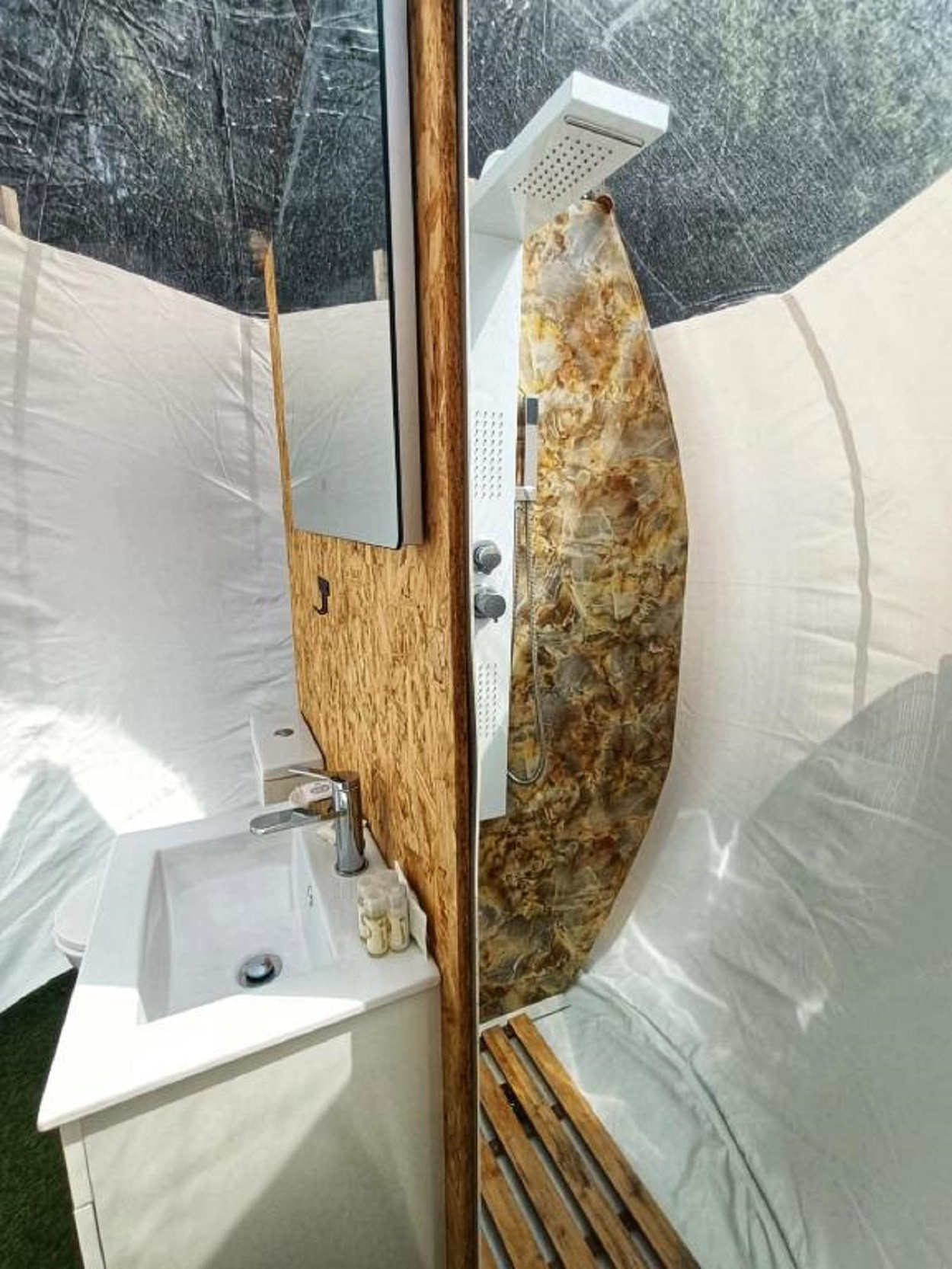 Possui cama de casal, casa de banho privativa com banheira de hidromassagem. Inclui pequeno-almoço servido no glamping (em horário marcado no check-in).