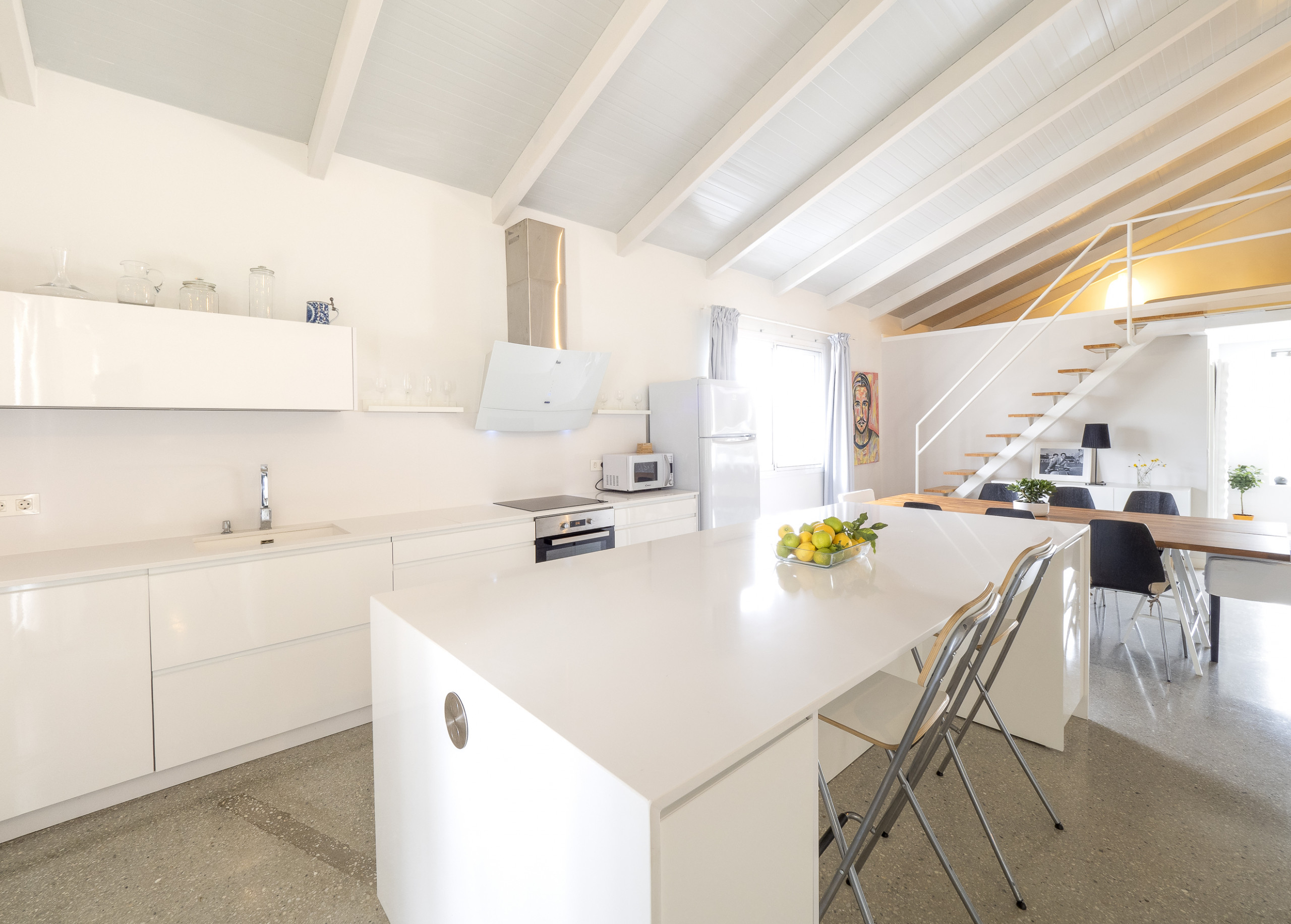 A kitchenette, de vitrocerâmica, está equipada com frigorífico, microondas, forno, congelador, máquina de lavar louça, louça/talheres, utensílios/cozinha, máquina de café, torradeira, jarro eléctrico e máquina de sumos.