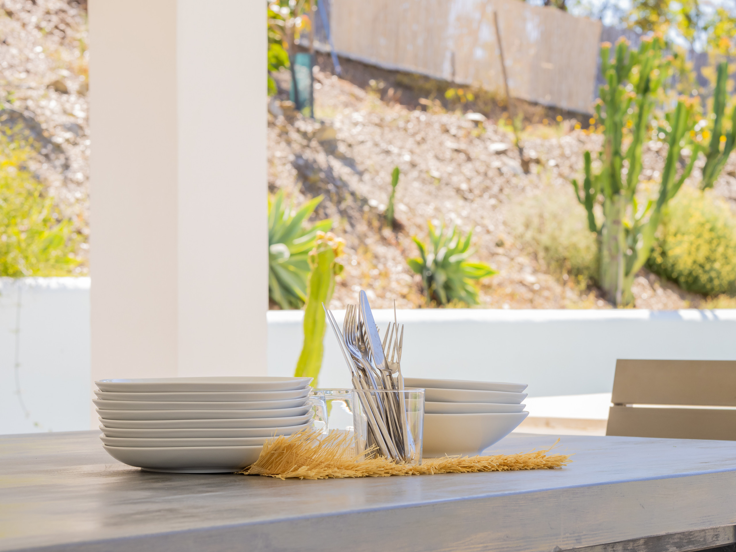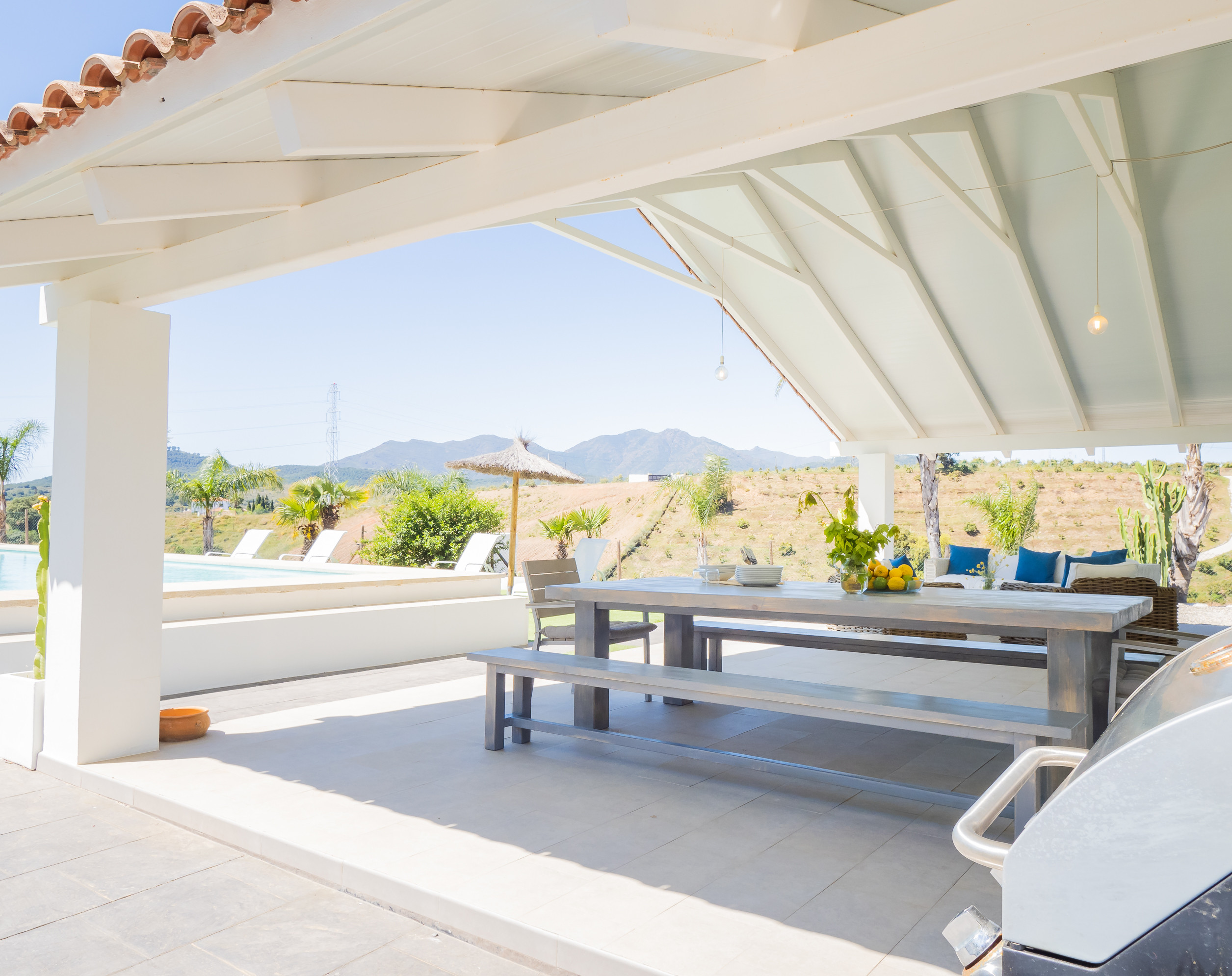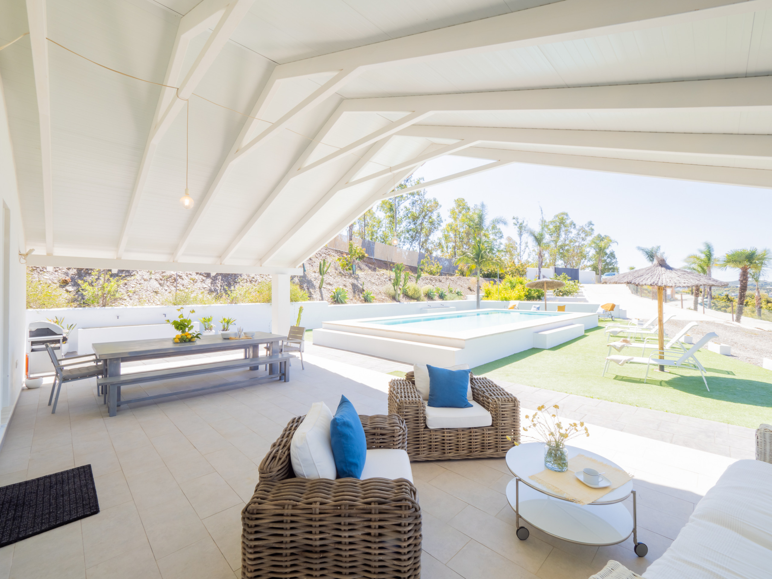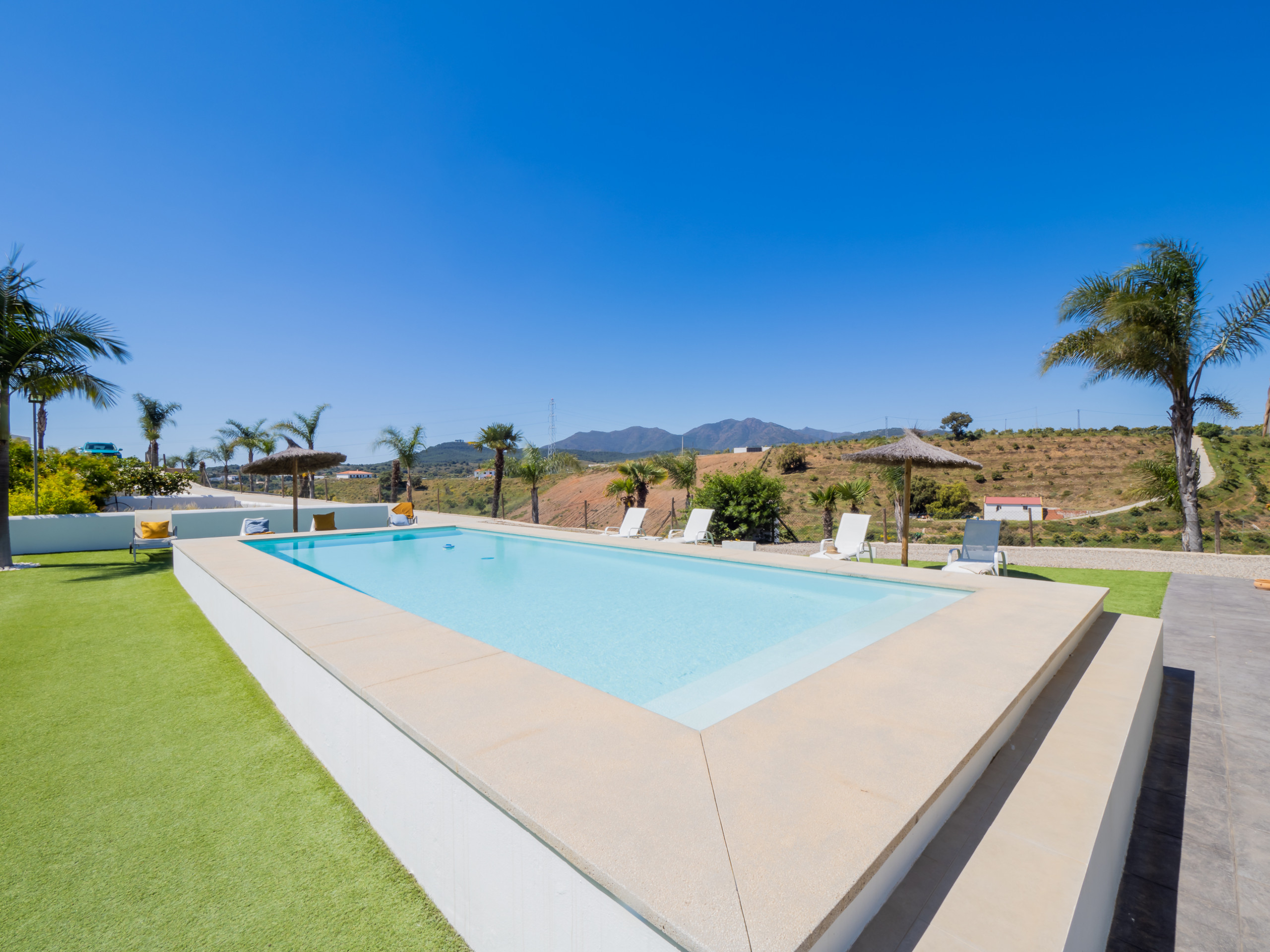 A beautiful property in an ideal location. We spent a week here after 4 scorching days in Madrid and it was perfect for my family. So peaceful and quiet with wonderful facilities. The villa itself is odd in the sense of it being totally open plan and therefore may not suit all, but apart from that fact the villa is close to perfection. A beautiful interior which is clean, simple and minimalist. Couple that with a well thought out exterior (shaded covered dining area and separate seating) and it is nigh on the perfect villa. The pool is huge and one depth throughout which works really well. What was also very good was the fact that we could play music outside throughout the day with no fear of disturbing others as there was no one close by at all. A car is a definite requirement as the villa is in the middle of nowhere and the latter part of the road is a dirt track. Having said that it is not problematic drive to reach the villa. I would however advise jet washing your hire car at the end of your stay at the garage in Coin. This will remove the fine dust that will inevitably coat your car. Better to spend 1 Euro than get hit with a charge for cleaning charges by the hire company! Overall a great villa which is well equipped and of a high standard. If you don't mind the lack of interior walls and doors then I certainly can recommend this beautiful villa!