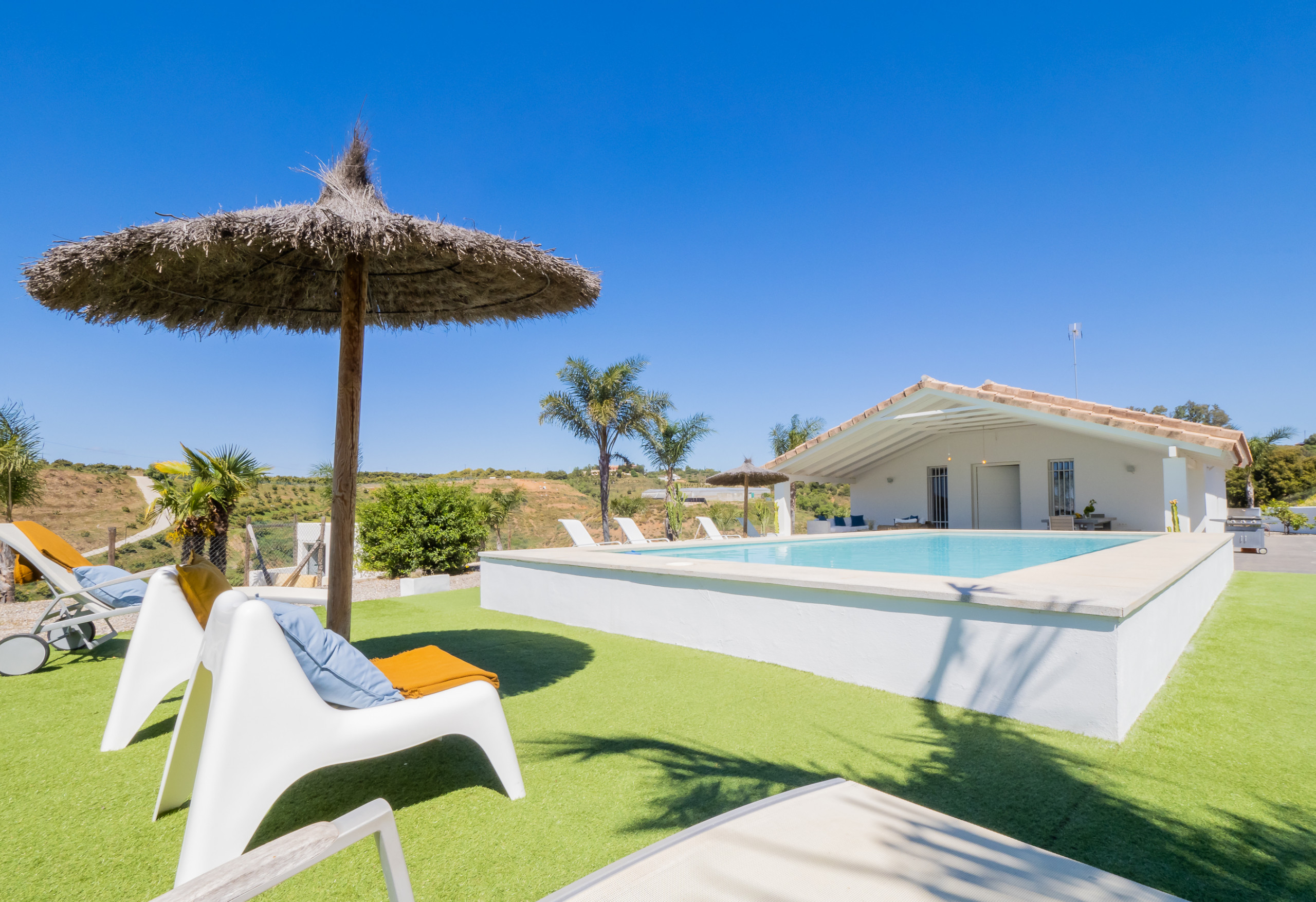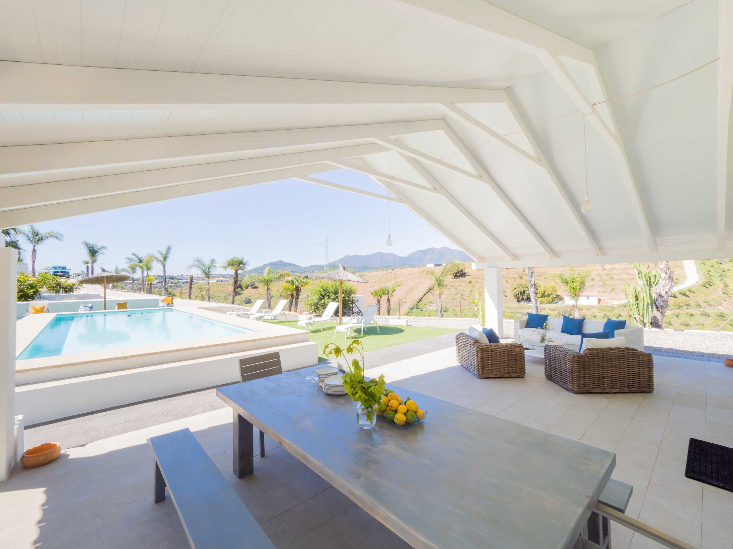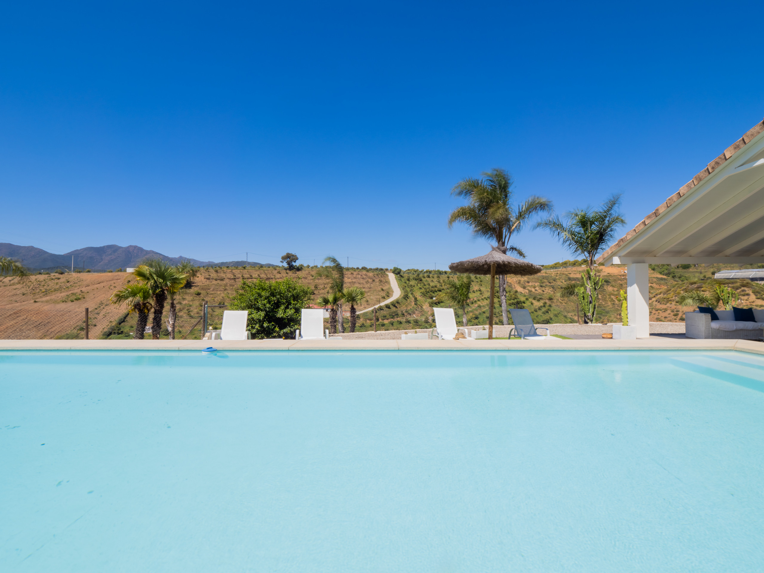 A beautiful property in an ideal location. We spent a week here after 4 scorching days in Madrid and it was perfect for my family. So peaceful and quiet with wonderful facilities.The villa itself is odd in the sense of it being totally open plan and therefore may not suit all, but apart from that fact the villa is close to perfection. A beautiful interior which is clean, simple and minimalist. Couple that with a well thought out exterior (shaded covered dining area and separate seating) and it is nigh on the perfect villa. The pool is huge and one depth throughout which works really well. What was also very good was the fact that we could play music outside throughout the day with no fear of disturbing others as there was no one close by at all.A car is a definite requirement as the villa is in the middle of nowhere and the latter part of the road is a dirt track. Having said that it is not problematic drive to reach the villa. I would however advise jet washing your hire car at the end of your stay at the garage in Coin. This will remove the fine dust that will inevitably coat your car. Better to spend 1 Euro than get hit with a charge for cleaning charges by the hire company!Overall a great villa which is well equipped and of a high standard. If you don't mind the lack of interior walls and doors then I certainly can recommend this beautiful villa!