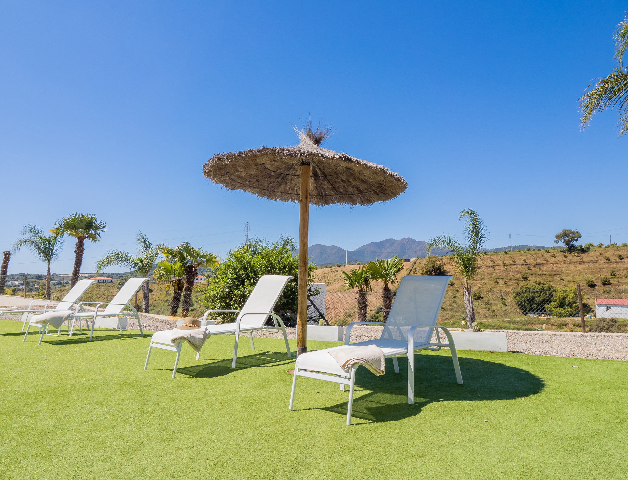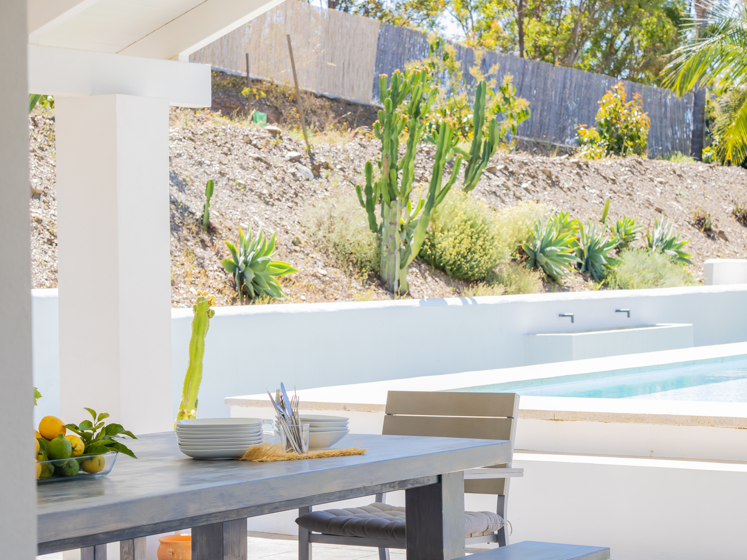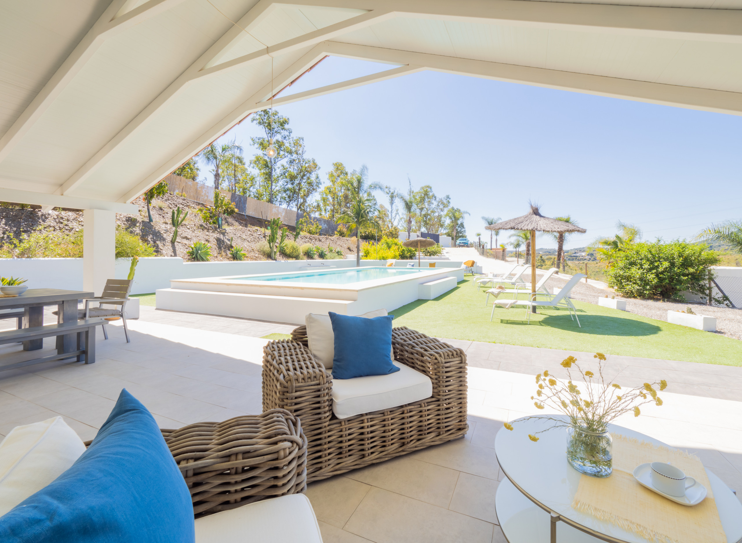 A beautiful property in an ideal location. We spent a week here after 4 scorching days in Madrid and it was perfect for my family. So peaceful and quiet with wonderful facilities.The villa itself is odd in the sense of it being totally open plan and therefore may not suit all, but apart from that fact the villa is close to perfection. A beautiful interior which is clean, simple and minimalist. Couple that with a well thought out exterior (shaded covered dining area and separate seating) and it is nigh on the perfect villa. The pool is huge and one depth throughout which works really well. What was also very good was the fact that we could play music outside throughout the day with no fear of disturbing others as there was no one close by at all.A car is a definite requirement as the villa is in the middle of nowhere and the latter part of the road is a dirt track. Having said that it is not problematic drive to reach the villa. I would however advise jet washing your hire car at the end of your stay at the garage in Coin. This will remove the fine dust that will inevitably coat your car. Better to spend 1 Euro than get hit with a charge for cleaning charges by the hire company!Overall a great villa which is well equipped and of a high standard. If you don't mind the lack of interior walls and doors then I certainly can recommend this beautiful villa!
