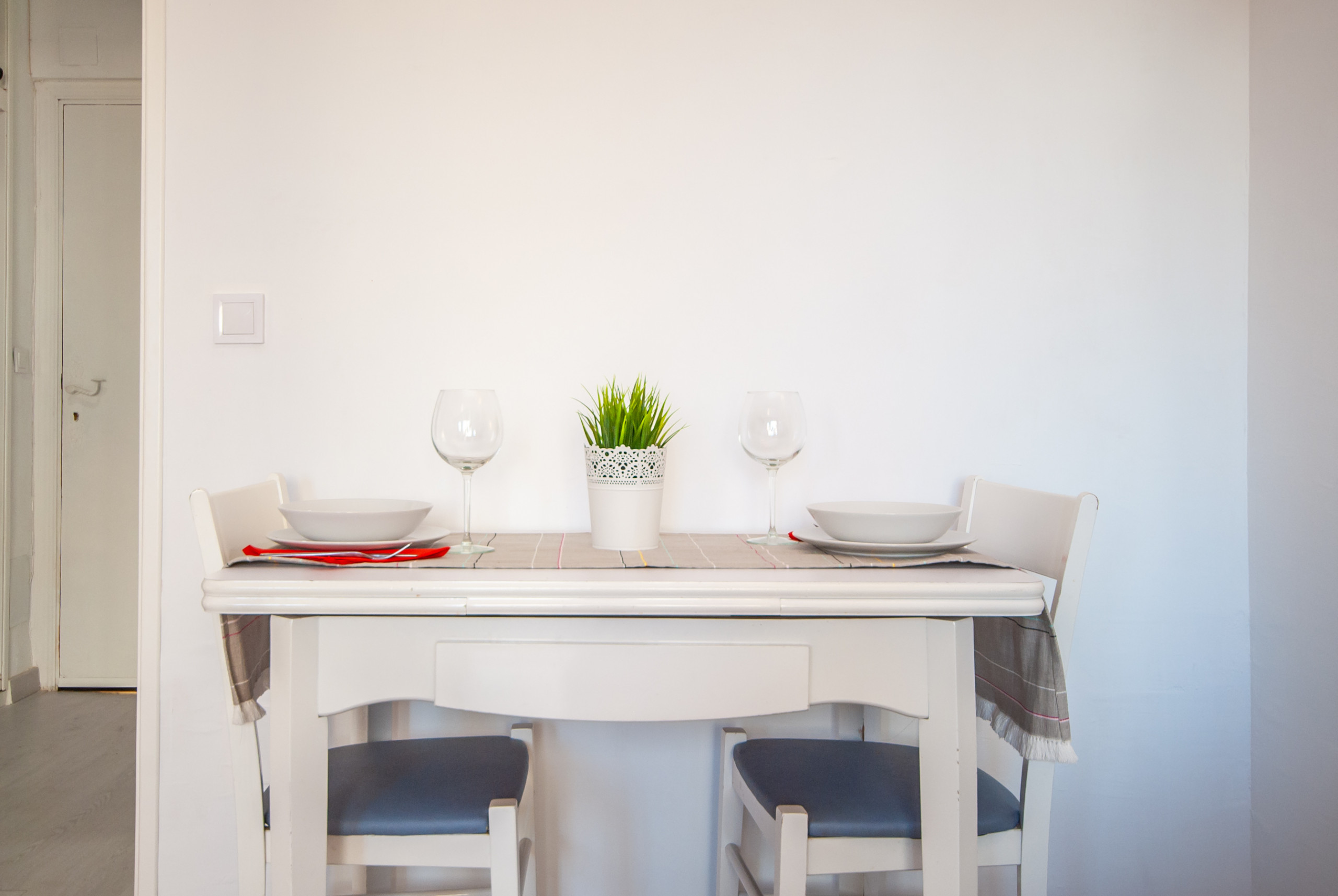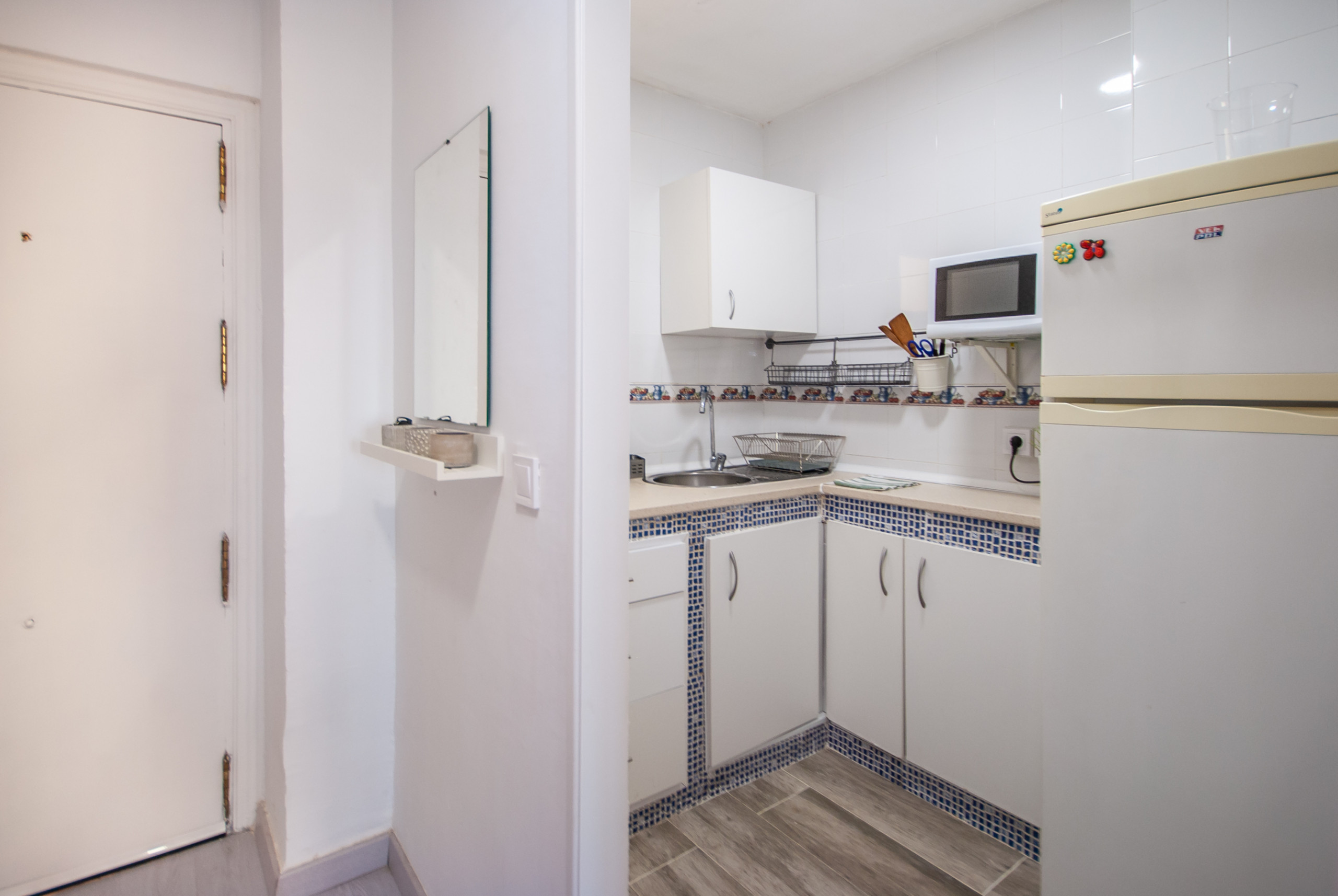 The apartment was fantastic and communal areas always clean & tidy. Area around apartments had plenty of restaurants and supermarkets so ideal for self-catering needs. Metro was only a 10 minute walk away so easy access to everything including airport. Air conditioning is in living room only but fan provided for bedroom. Best to in living room in hot summer months. The washing machine was good addition too. Only issue was that the pool was empty and the neighbouring apartments (Hercules) pool was overcrowded anyway. Andrea was lovely and even turned up a bit earlier for us so we could pick up keys. Thank you.
