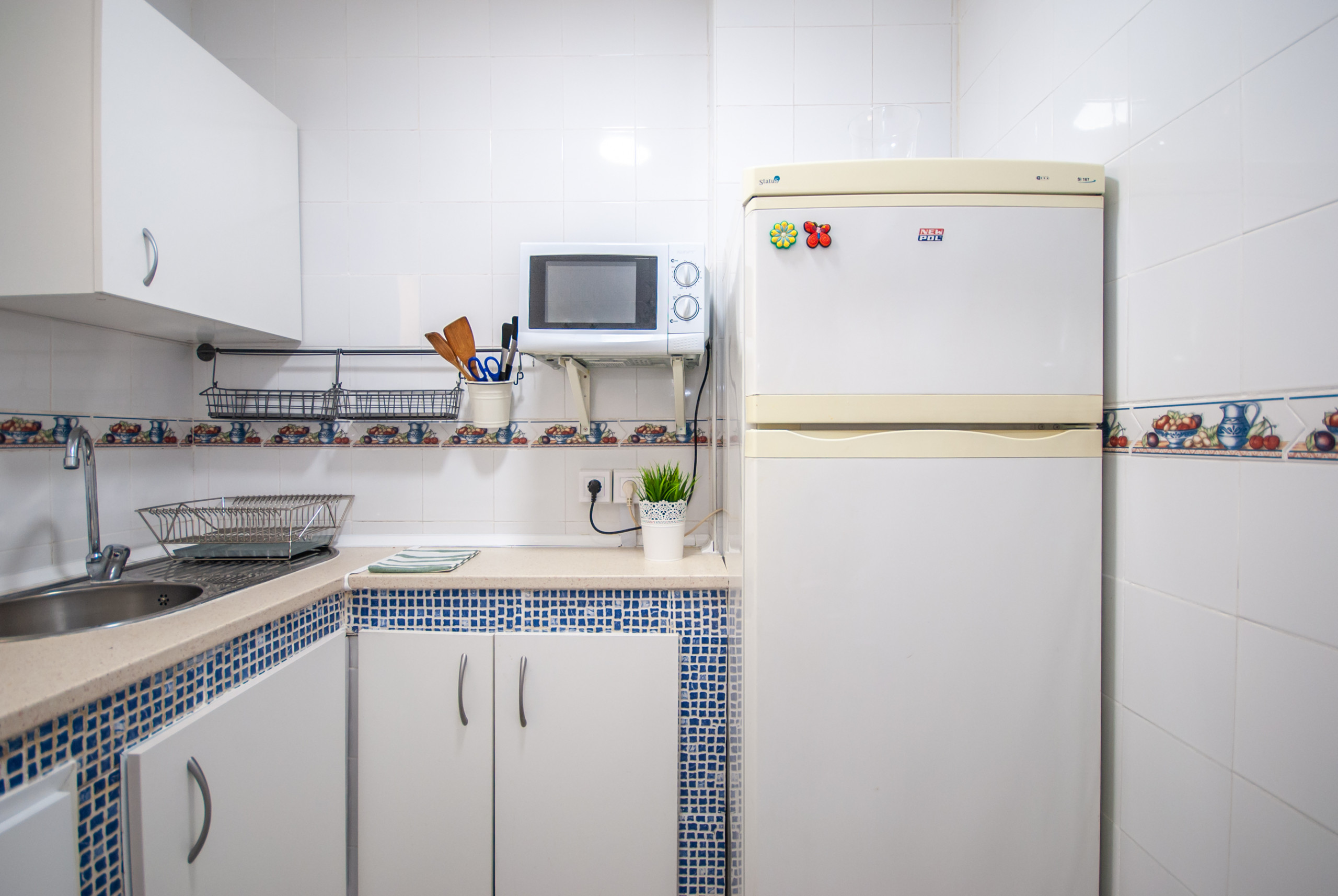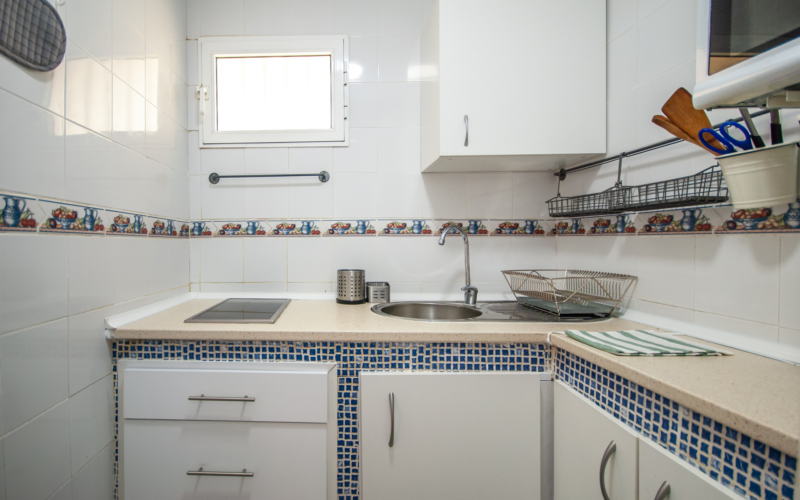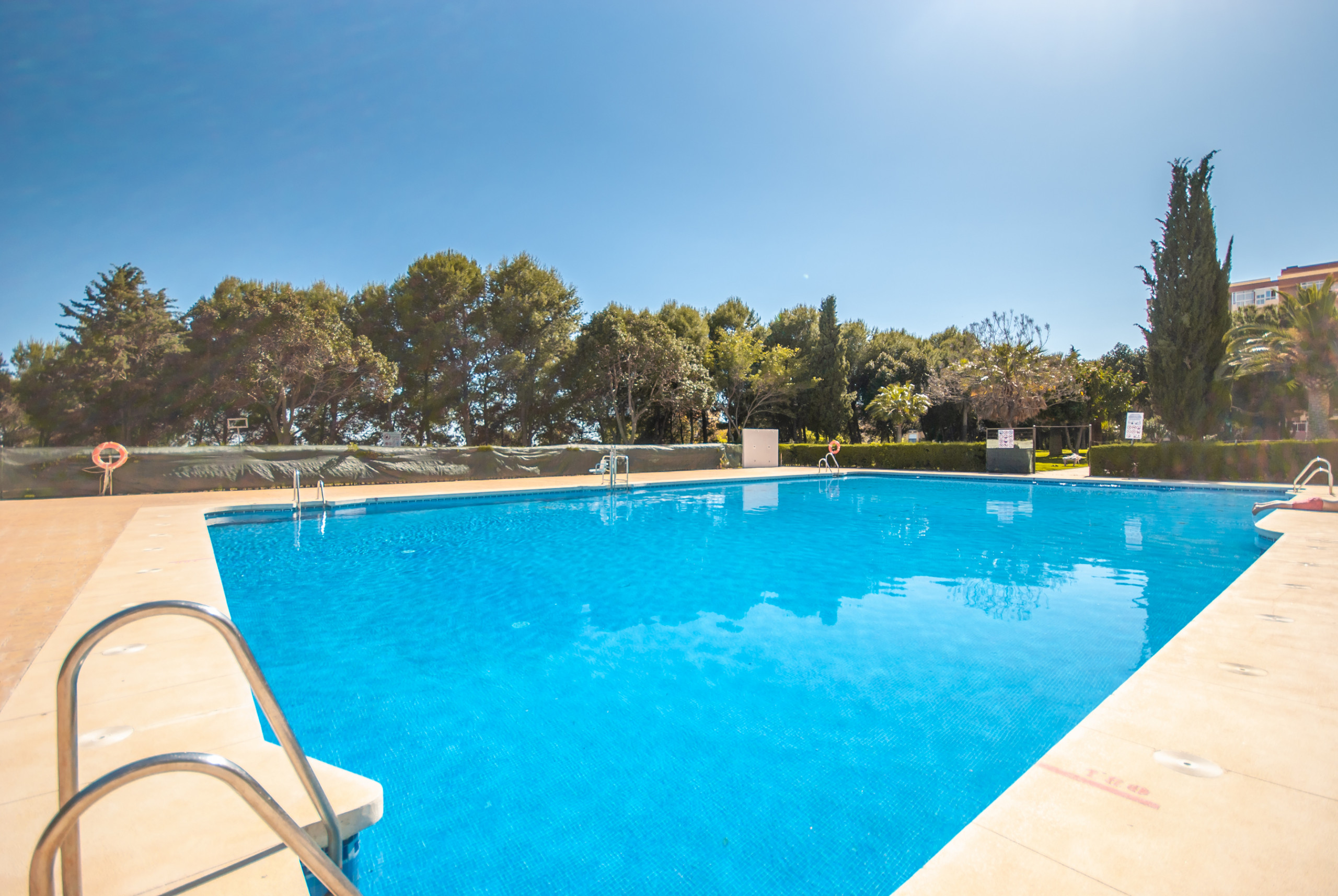 Situated between the town and the beach was perfect. Pool areas were clean and pool was warm. The apartment had a washing machine which was handy, also washing liquid, etc probably left by previous people. The apartment was modern with lots of storage.