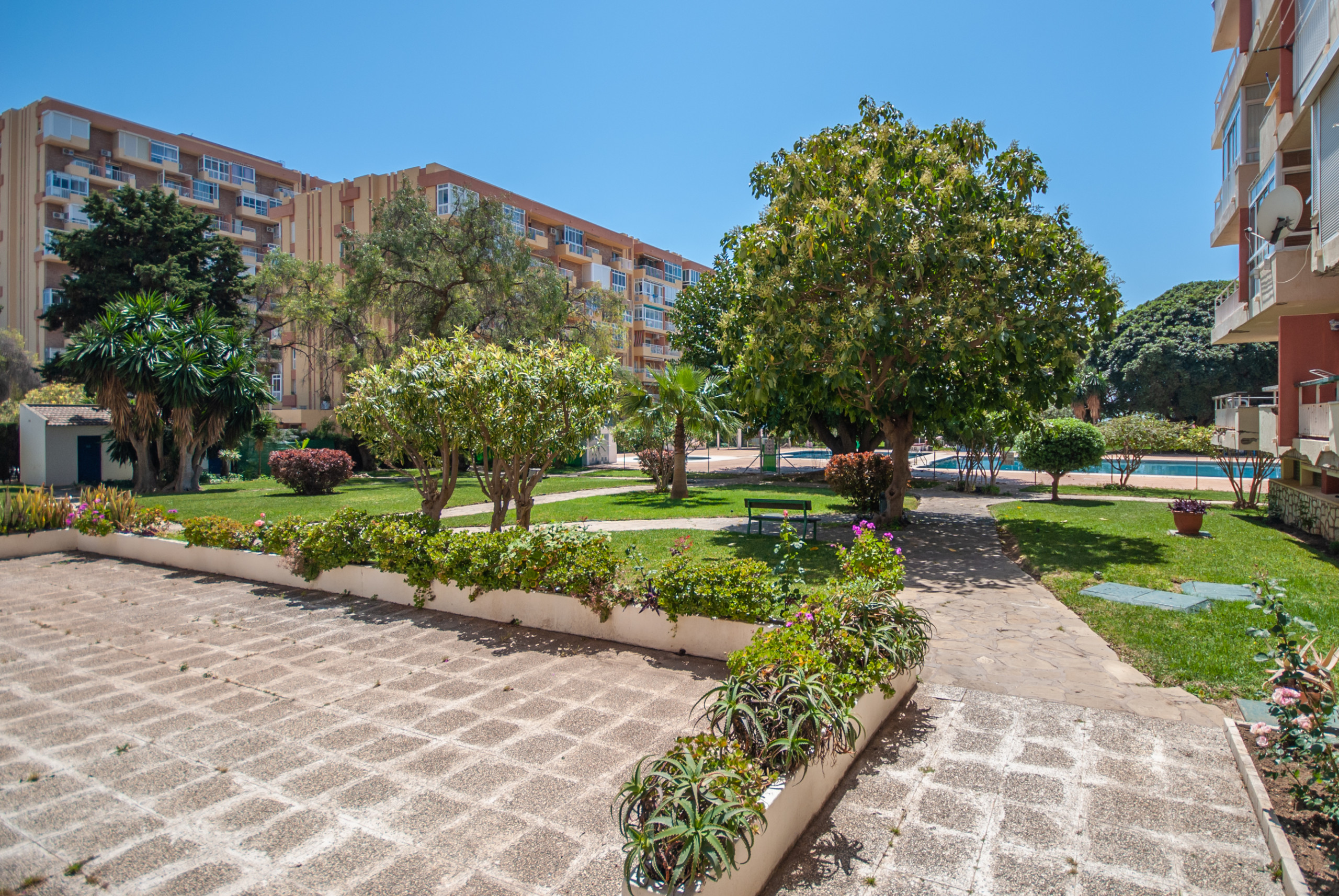 The residential complex stands out for its four community swimming pools (available depending on the season) and extensive gardens with paths and shaded areas, ideal for sunbathing or disconnecting surrounded by nature. The location is unbeatable, just a 10-minute walk from the beach and 2 minutes from the famous Paloma Park, with shops, restaurants and bars within reach, as well as a rich cultural offer to explore.