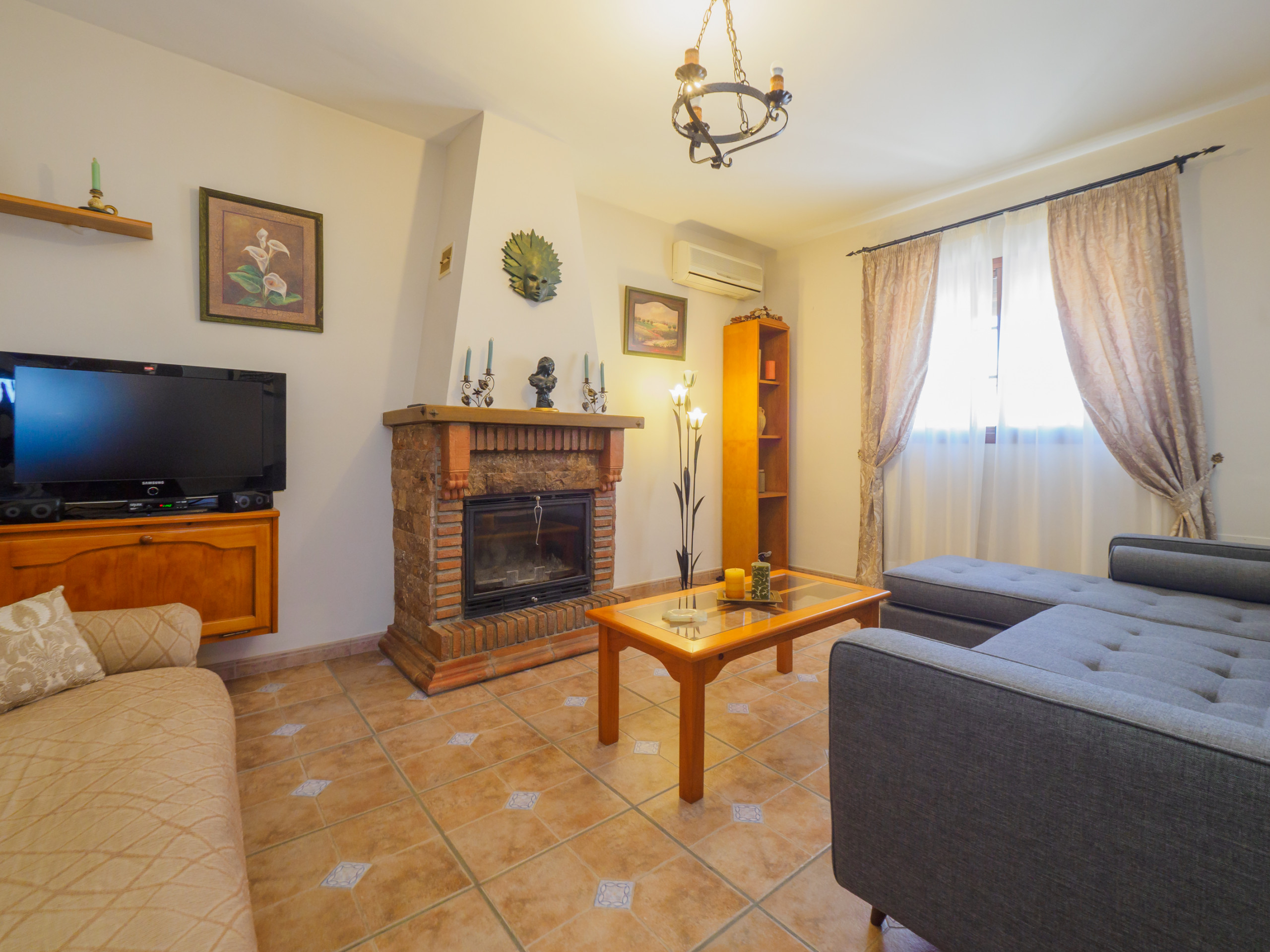 The house is distributed over two floors. On the ground floor, you will find a spacious entrance hall that leads to a complete kitchen equipped with all the necessary appliances (ceramic hob, oven, microwave, fridge, freezer, washing machine, coffee maker, toaster, kettle, and juicer) to prepare everything from simple to elaborate meals. It also has a comfortable living room with a fireplace and television to gather and relax, and two bedrooms (one with a double bed and another with two single beds), both with air conditioning for your comfort. In addition, there is a full bathroom on this floor. ❄️📺