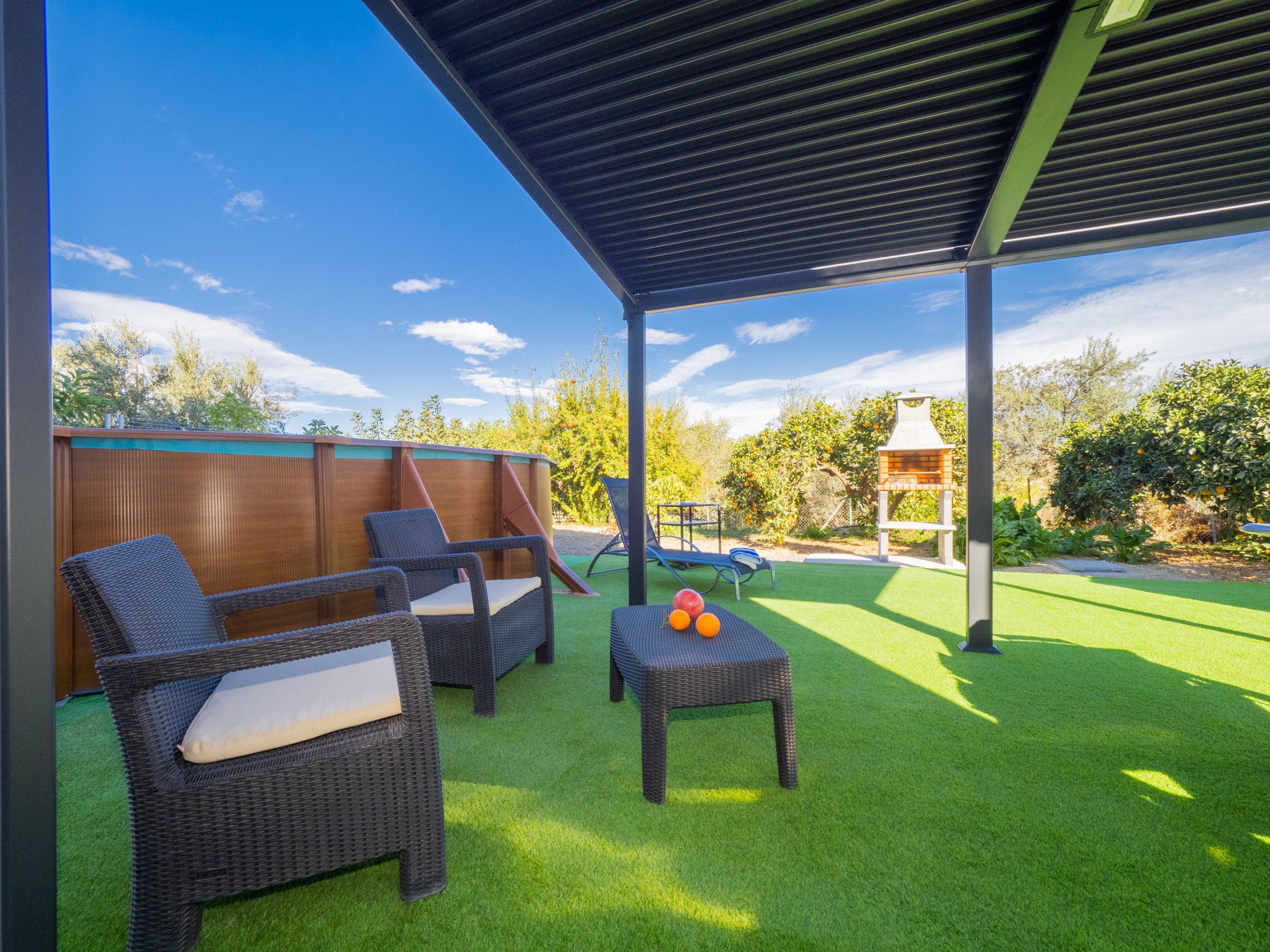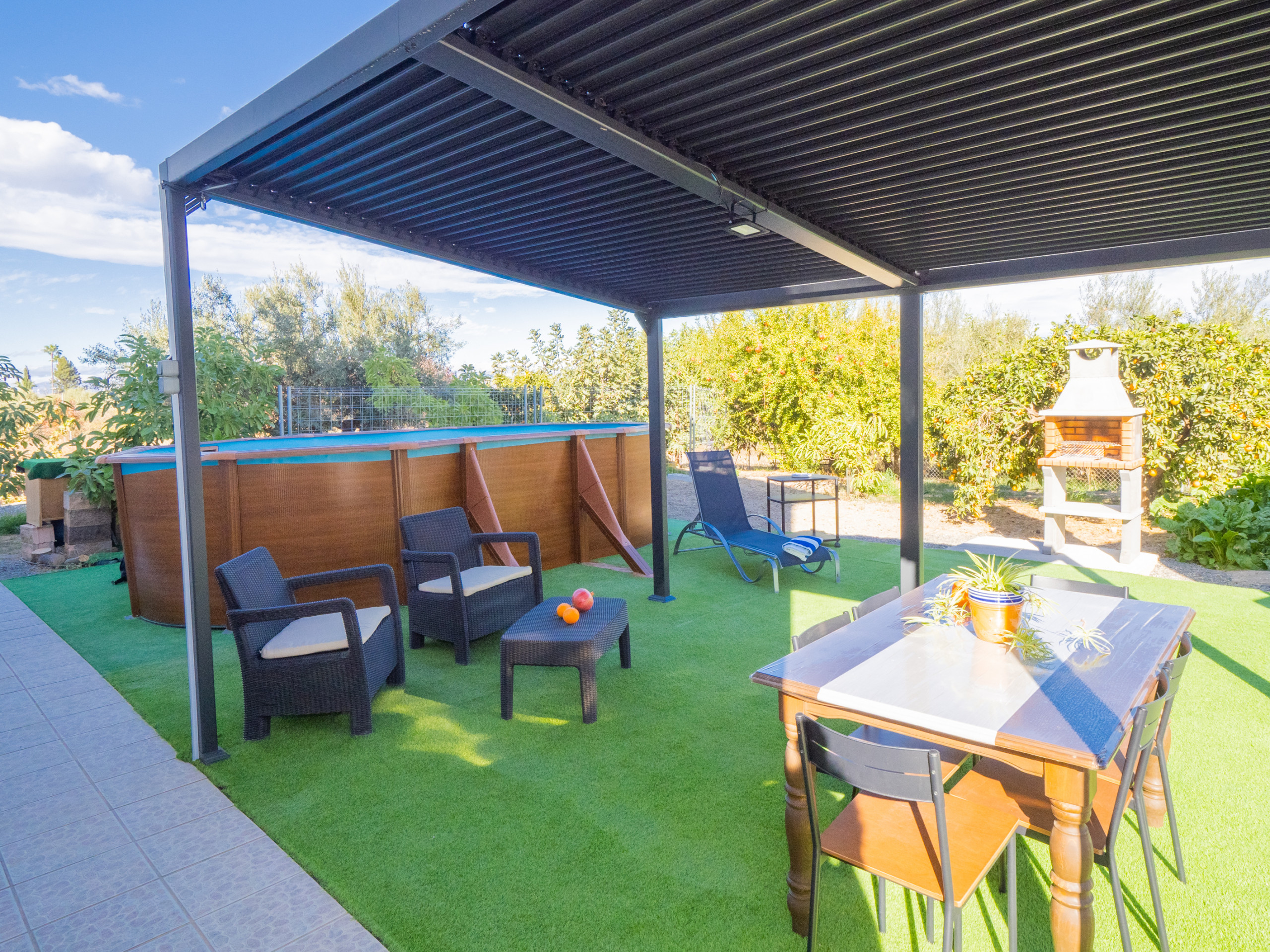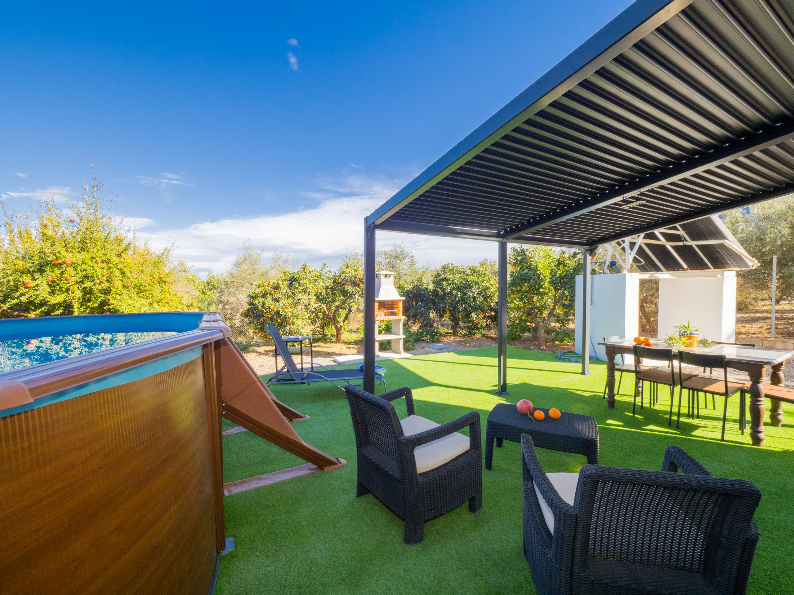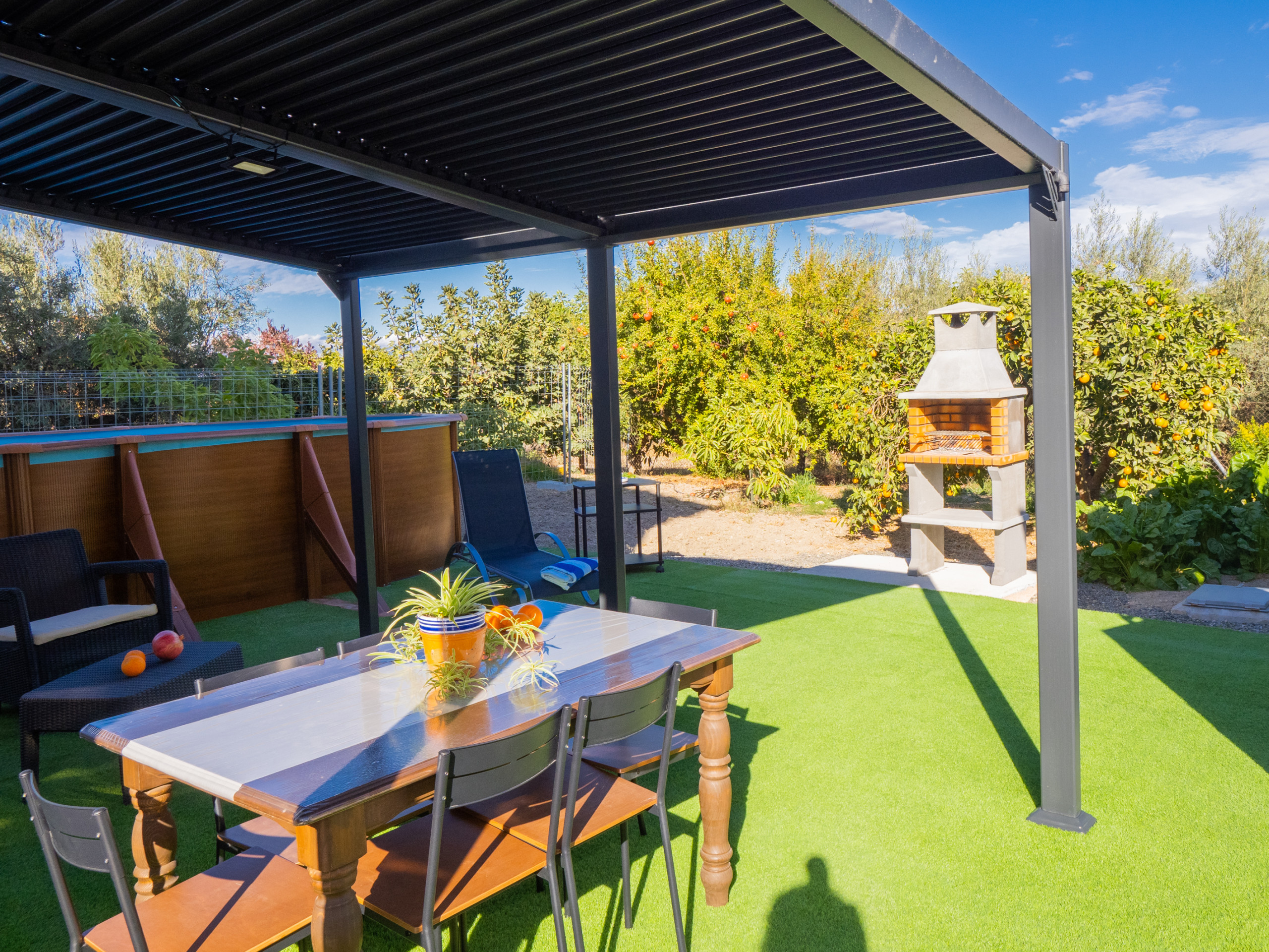Rural accommodation with fenced plot and removable swimming pool.